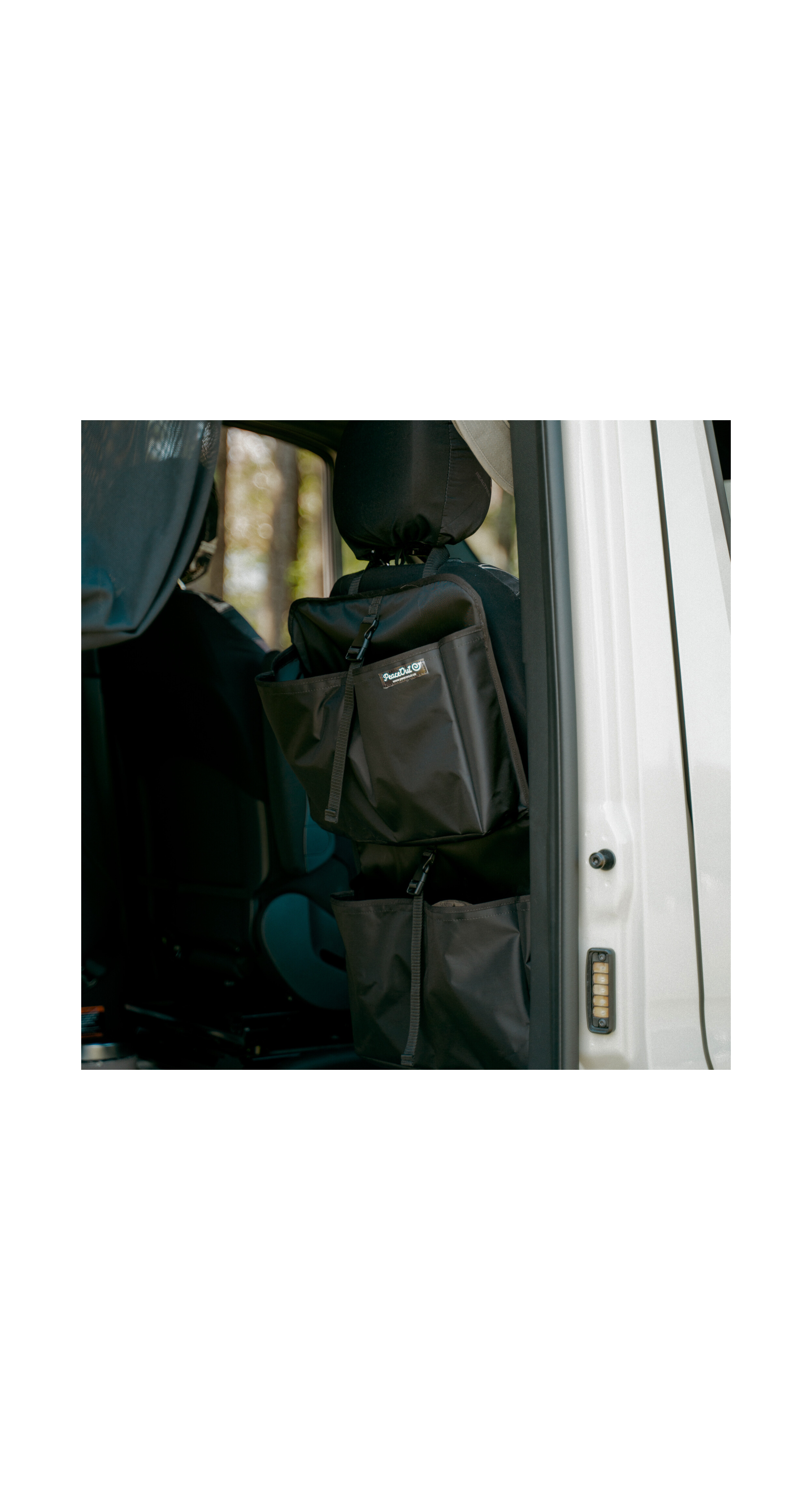 PeaceOut backseat storage bag is equipped with adjustable straps for the backrest and headrest, fits all vehicles. Made from durable, water-resistant fabric. It features two extra-large adjustable pockets, perfect for storing shoes, a laptop, travel guides, and much more!