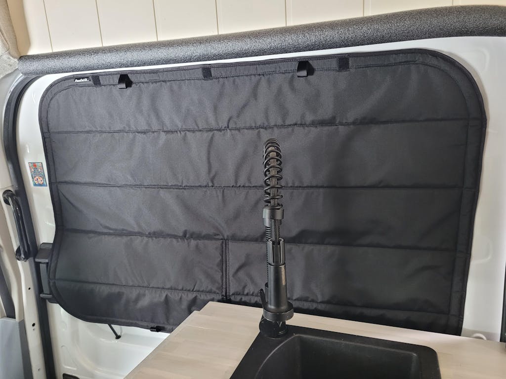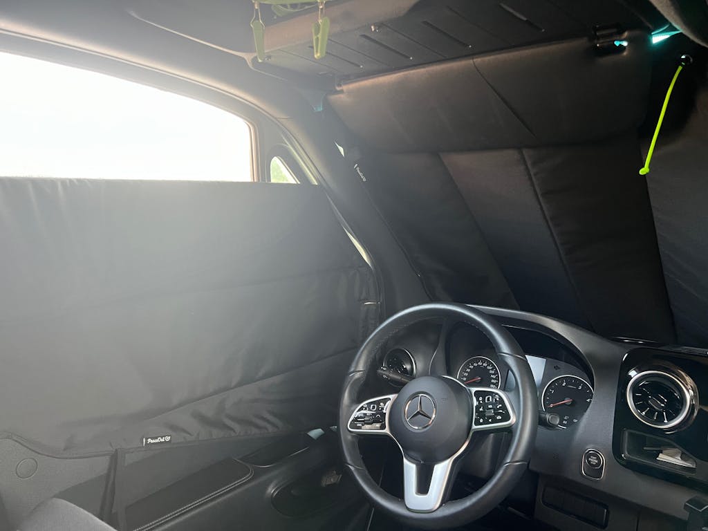 Conçus pour s’adapter parfaitement à votre modèle de VR, nos couvre-fenêtres isolants bloquent complètement la lumière et contribuent à préserver une température intérieure confortable grâce à leur isolation quatre saisons. L’installation se fait rapidement de l’intérieur du véhicule : le panneau de pare-brise s’attache à l’aide de petits crochets amovibles, tandis que les panneaux pour les portes conducteur et passager s’aimantent à la carrosserie intérieure.